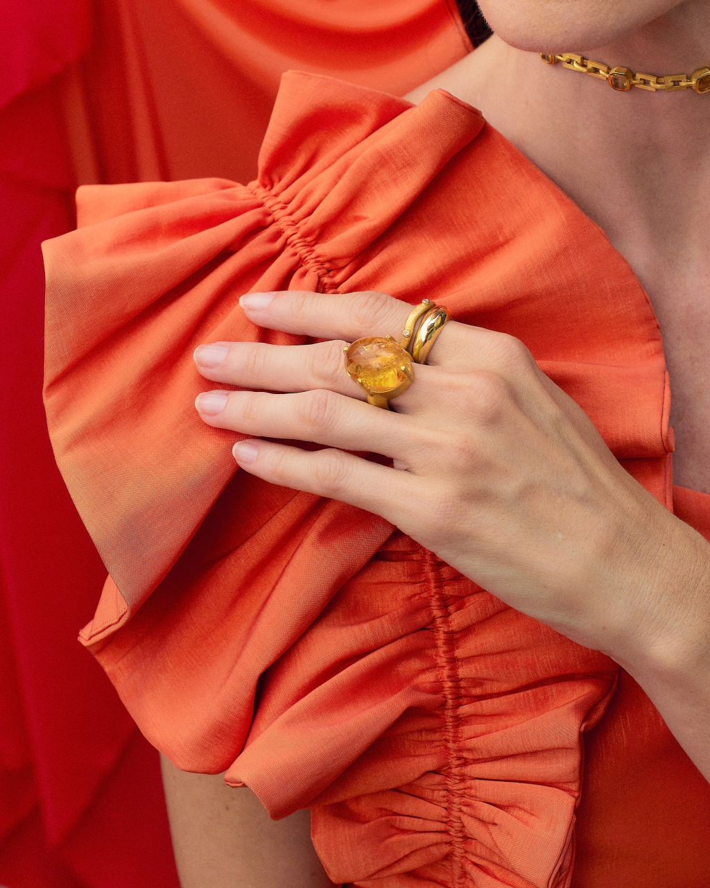 Anel Luz | prata 950 | Greengold champagne | Banho de ouro amarelo 18k