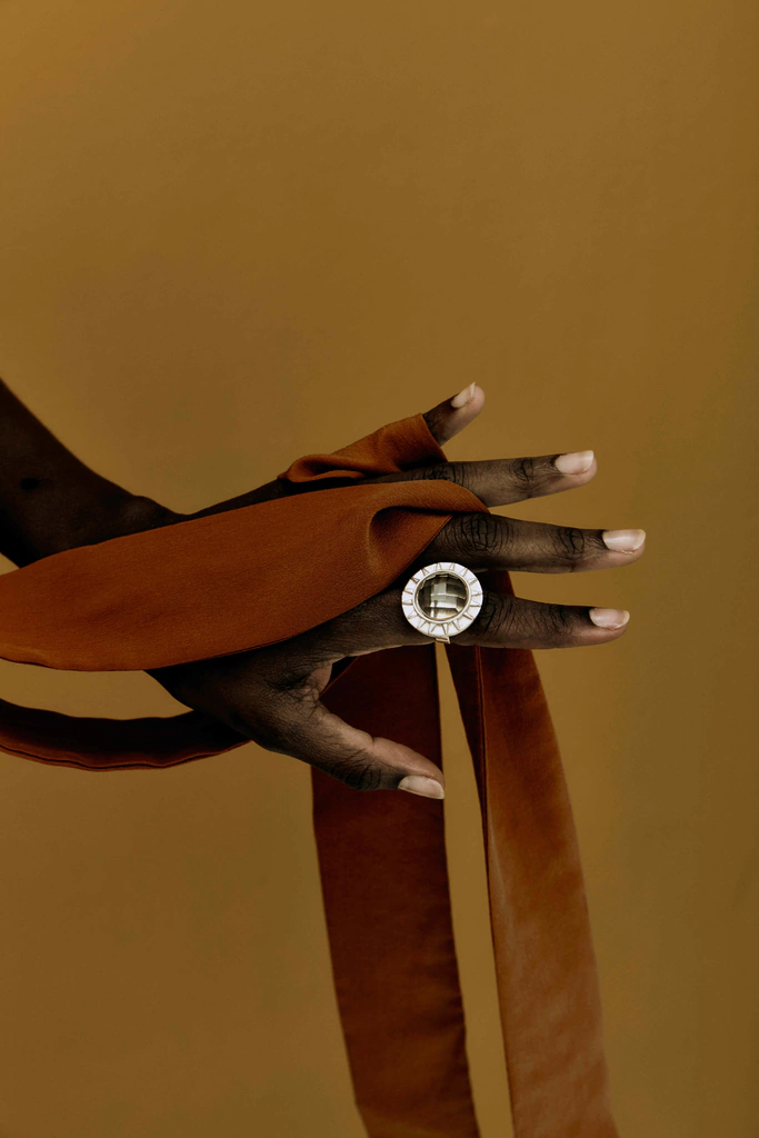 Anel em prata 950 com acabamento polido | Pedra em lapidação briole Quartzo Cristal