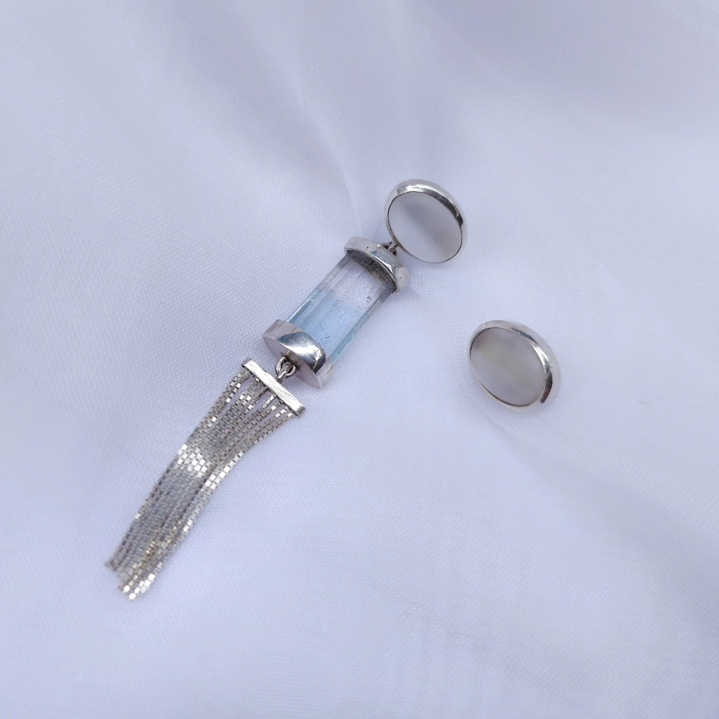 Brinco Agua Viva | Prata 950 | Topázio azul bicolor com quartzo cristal