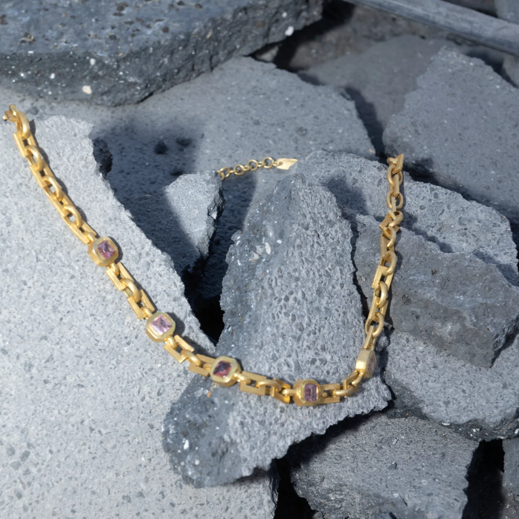 Gargantilha Riviera Sakura | Turmalina rosa | Banho de ouro amarelo 18k